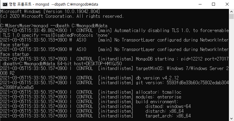 mongod --dbpath C:\mongodb\data