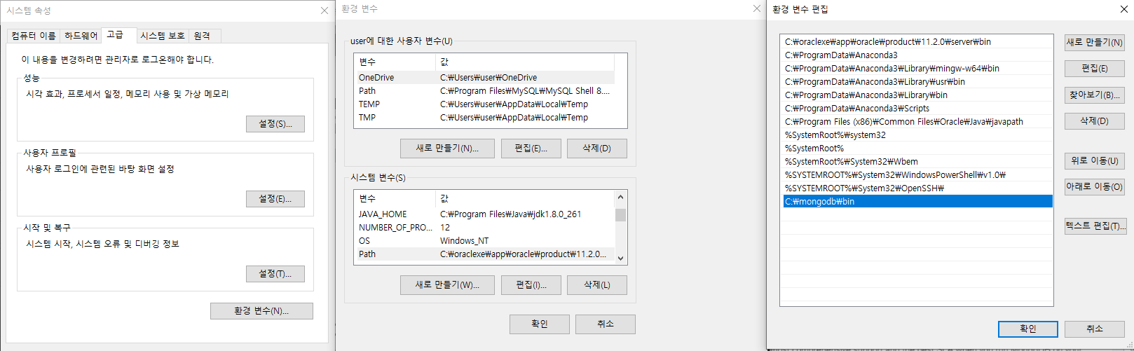 고급-시스템속성-환경변수-시스템변수 Path-편집