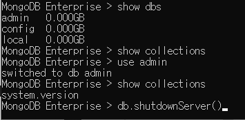 cmd창을 하나 더 열여서 mongo라고 입력하면 촤르륵 뭔가 나오고