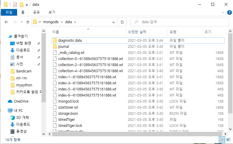 설치한 mongodb안에 bin이 위치해있는 경로에 data라는 새 파일을 직접 만들어준 후에,