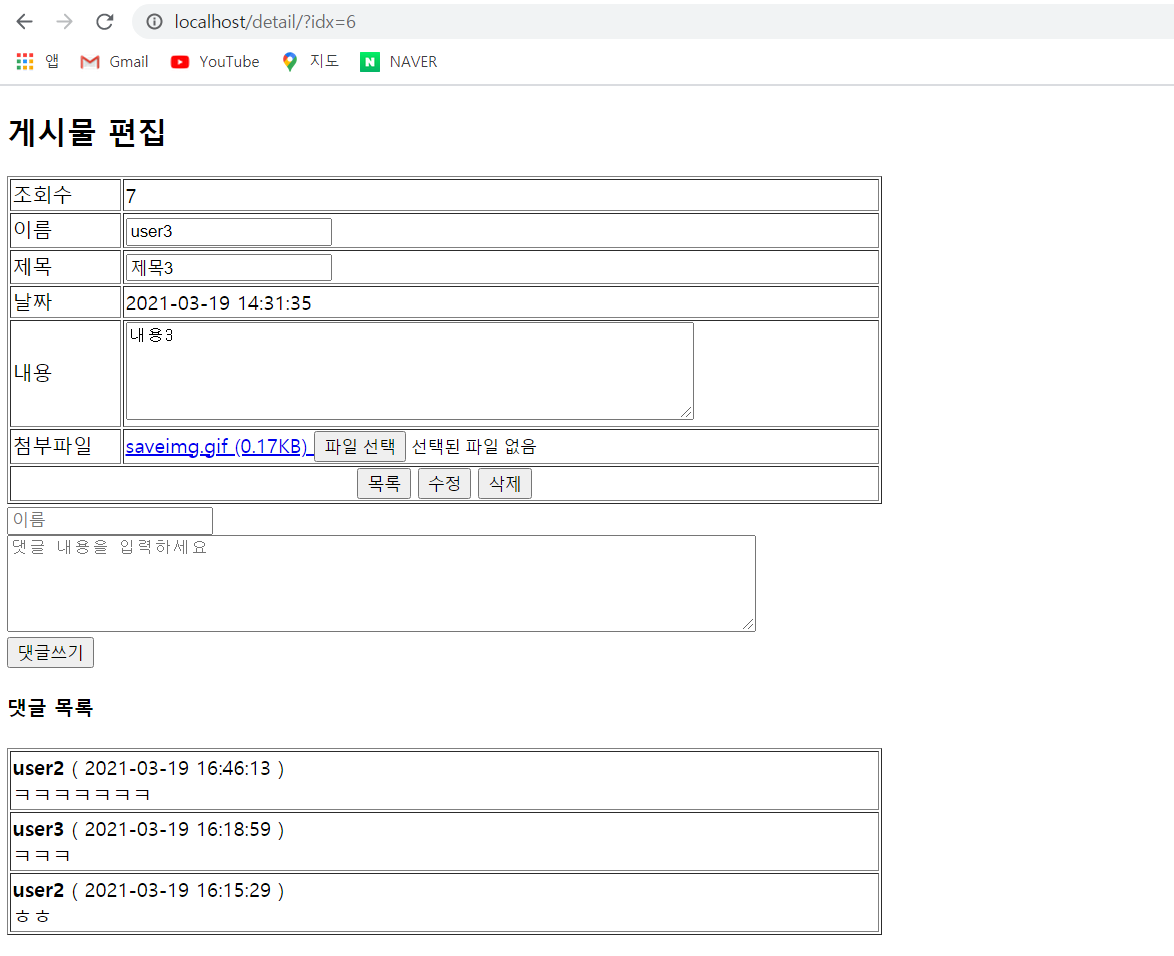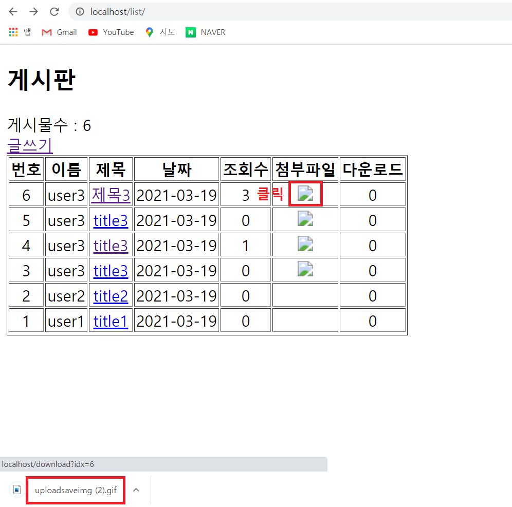 localhost/list : 첨부파일을 누르면 아래 다운로드 진행상황이 나타난다