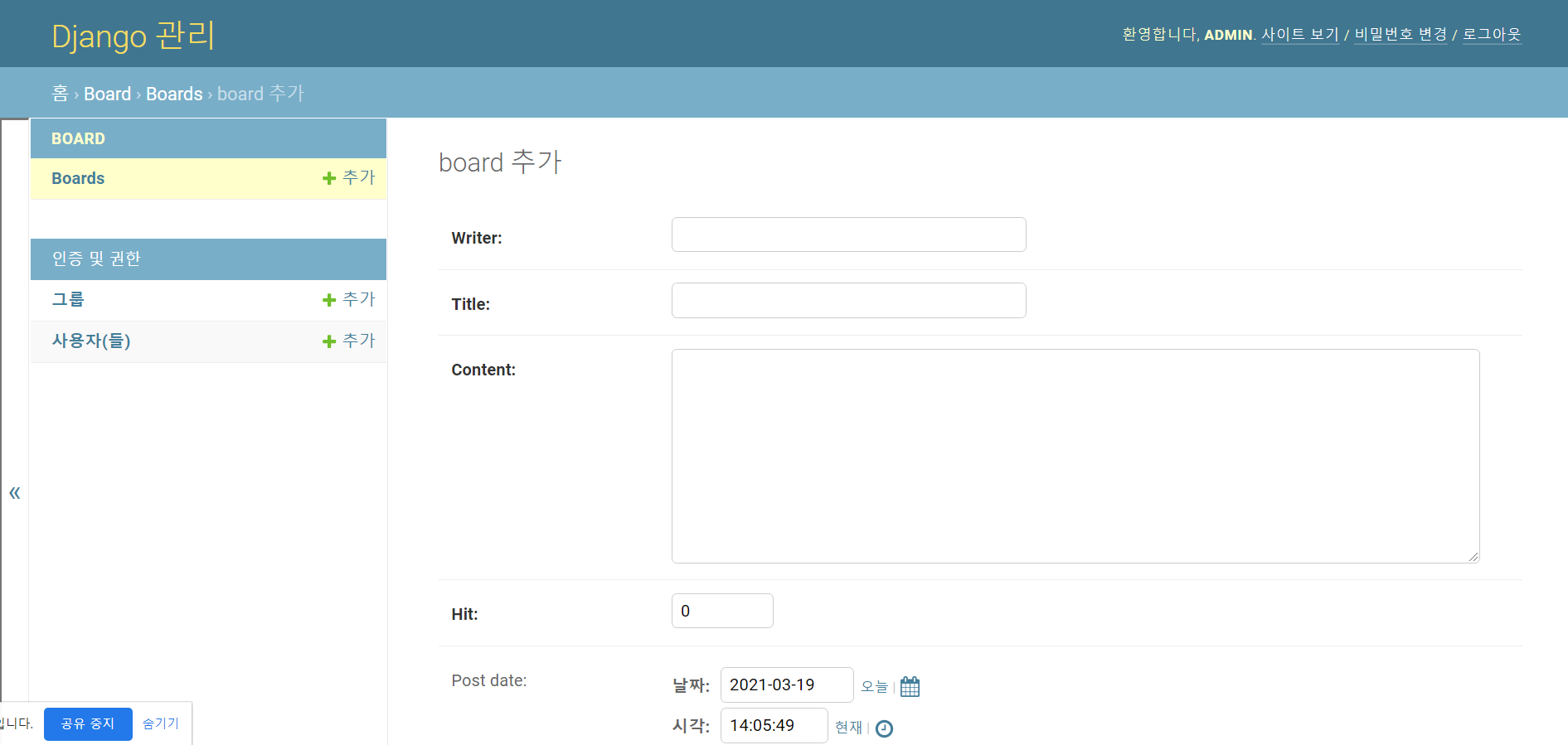 C:\hj\django_work\pyweb_board>python manage.py runserver localhost:80