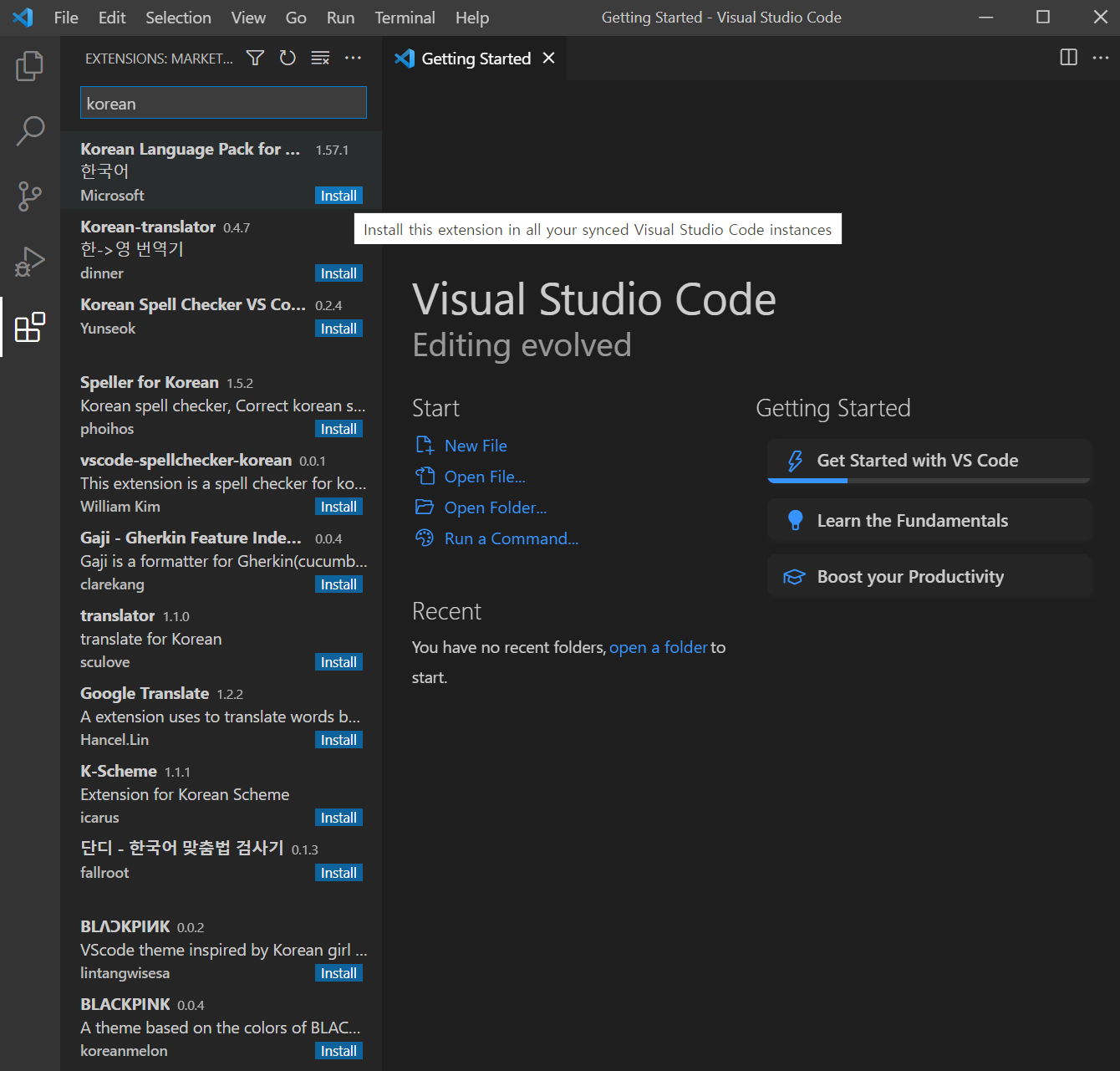 다운로드가 완료되고 다시 검색하면 ko라고 (korean)이 있다