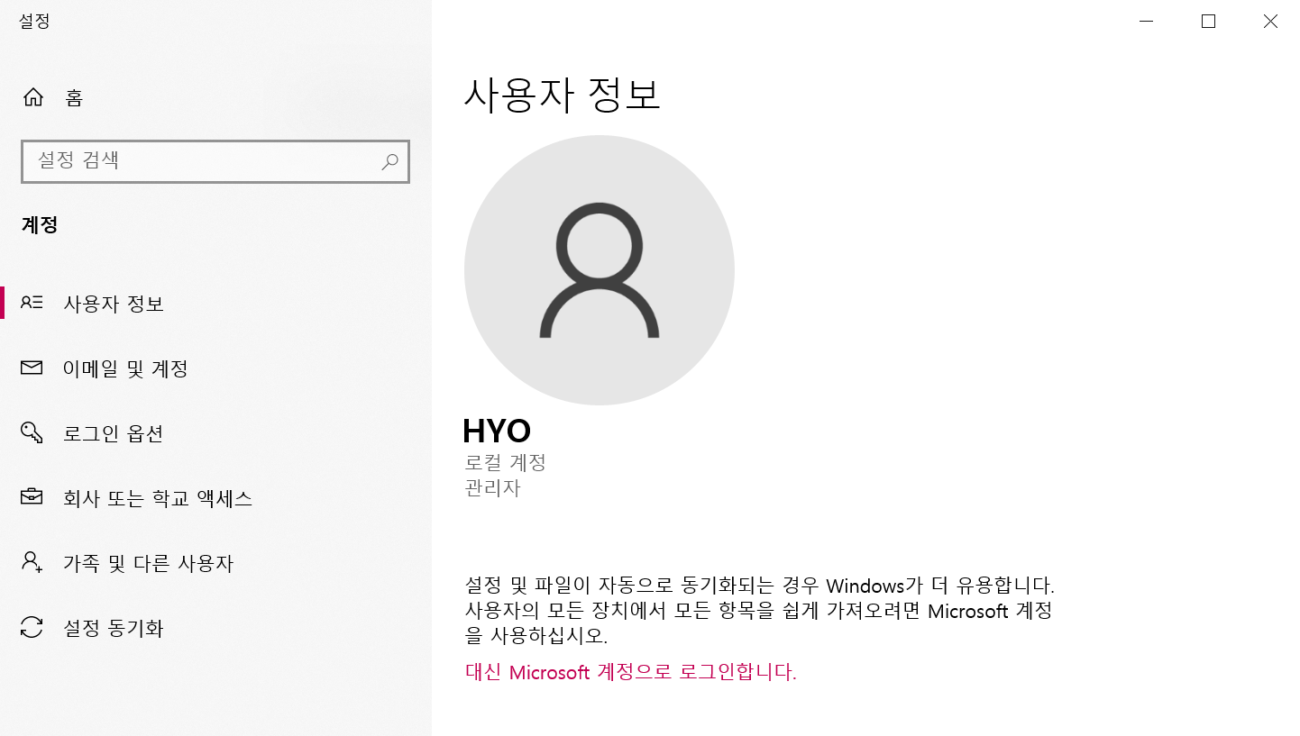 그래서 사용자 정보에 계정을 추가해서 User>hyo를 새로 생성했다