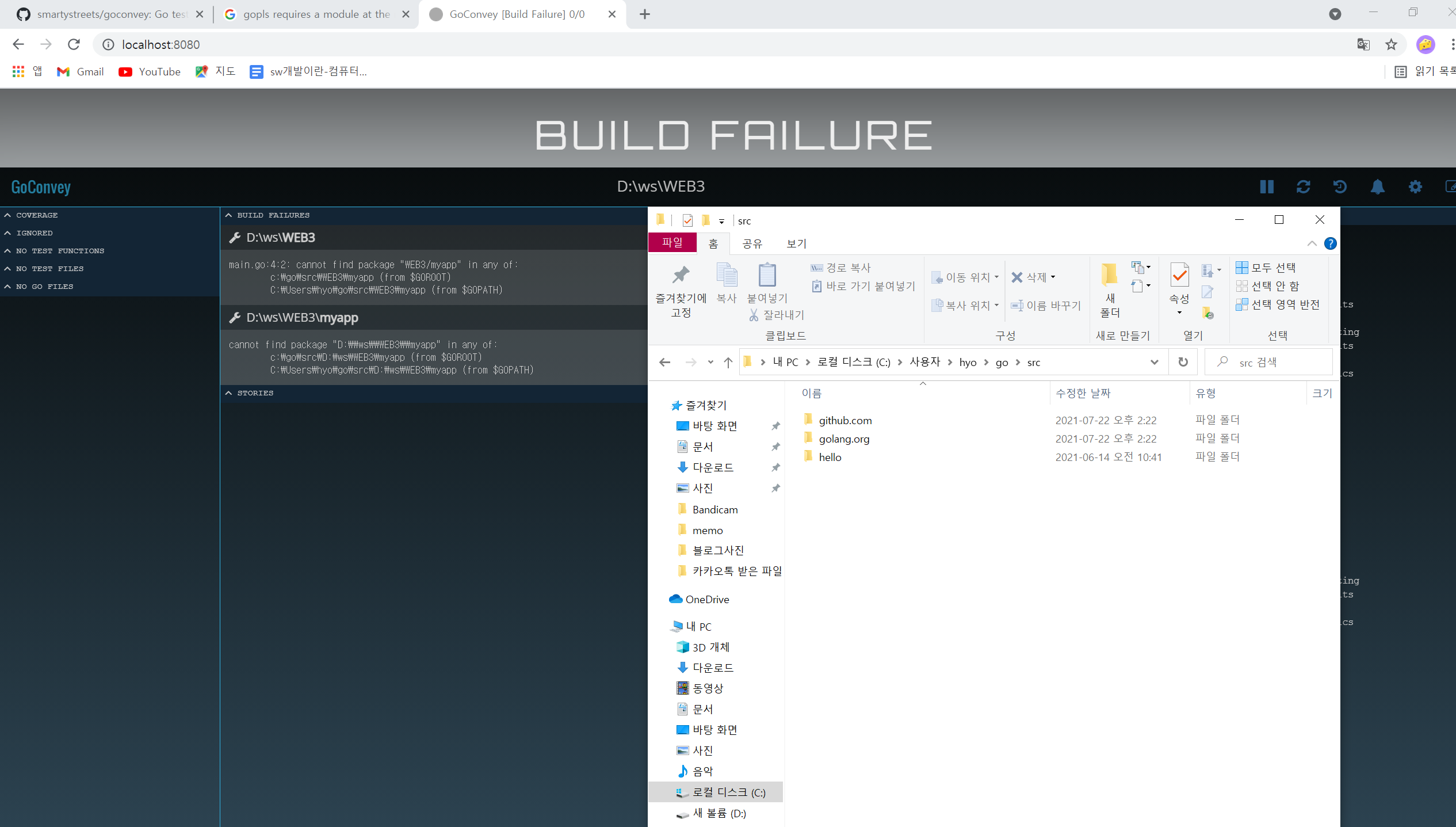 원래 잘 깔려있는 C:\User\hyo\go\src 에 WEB3를 옮겼다