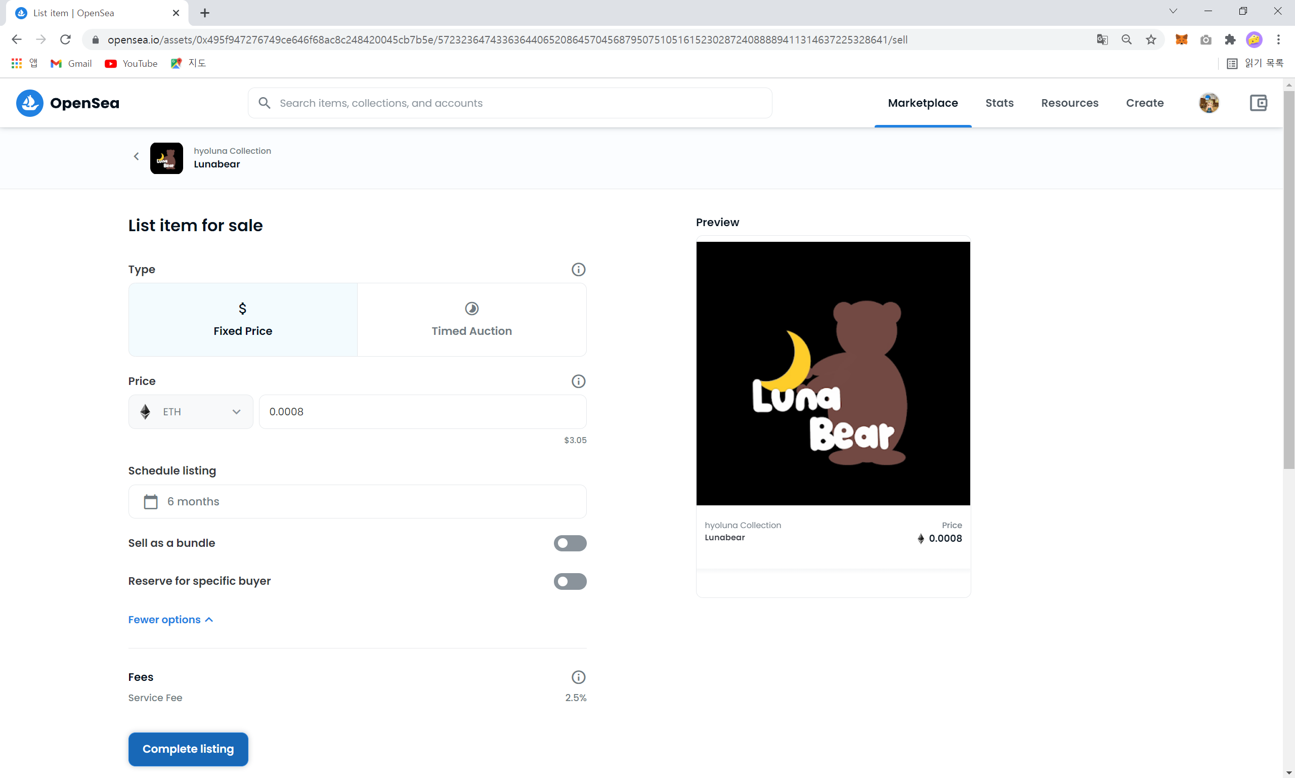 1. 판매타입 : 고정된 가격으로 팔 것인지, 경매를 할 것인지 선택