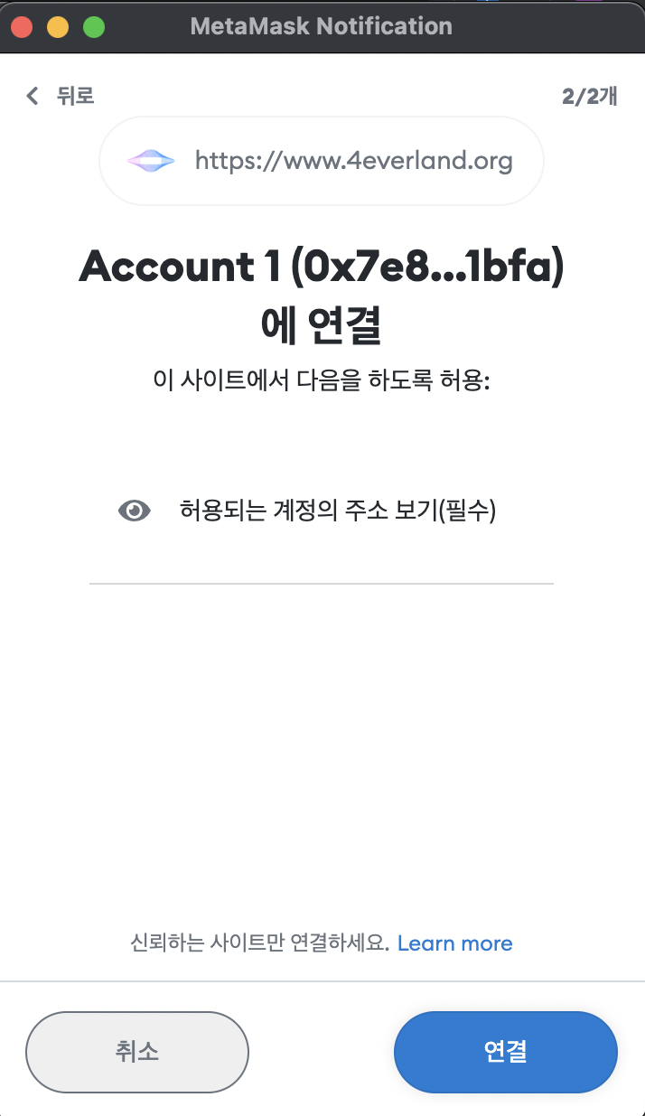 3. 메타마스크 연결은 가스비나 트랜잭션 수수료가 드는 것이 아니며 오로지 "로그인" 기능으로 쓰인다.