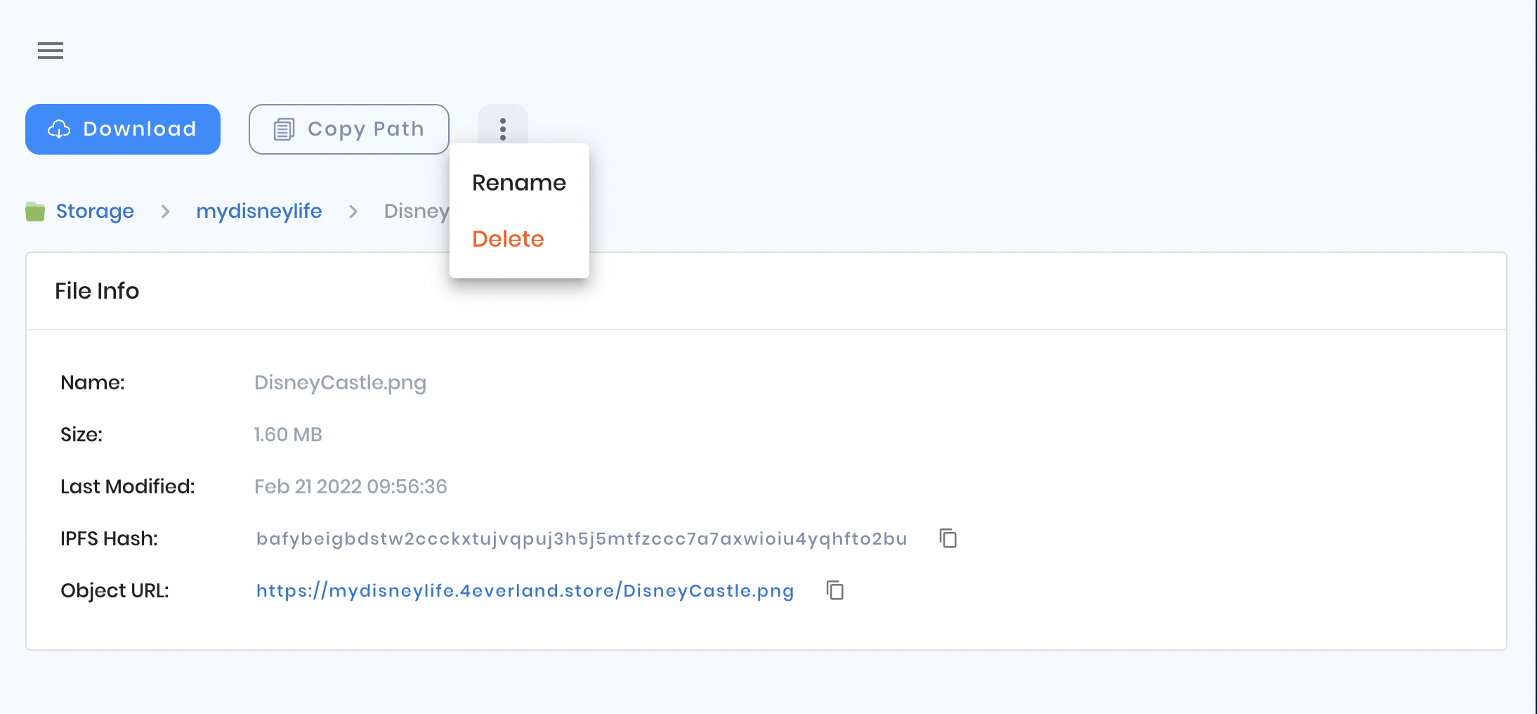 (이미지 사이즈와, IPFS 해시값, 마지막 수정날짜가 뜬다)