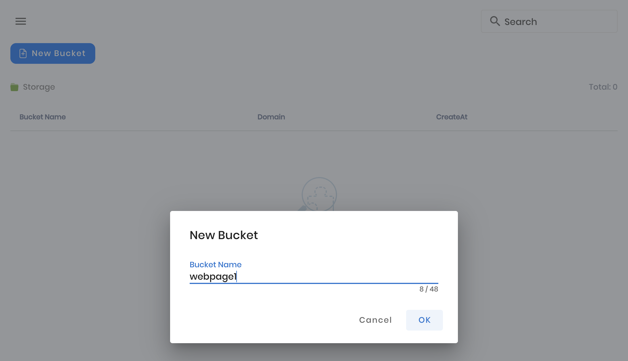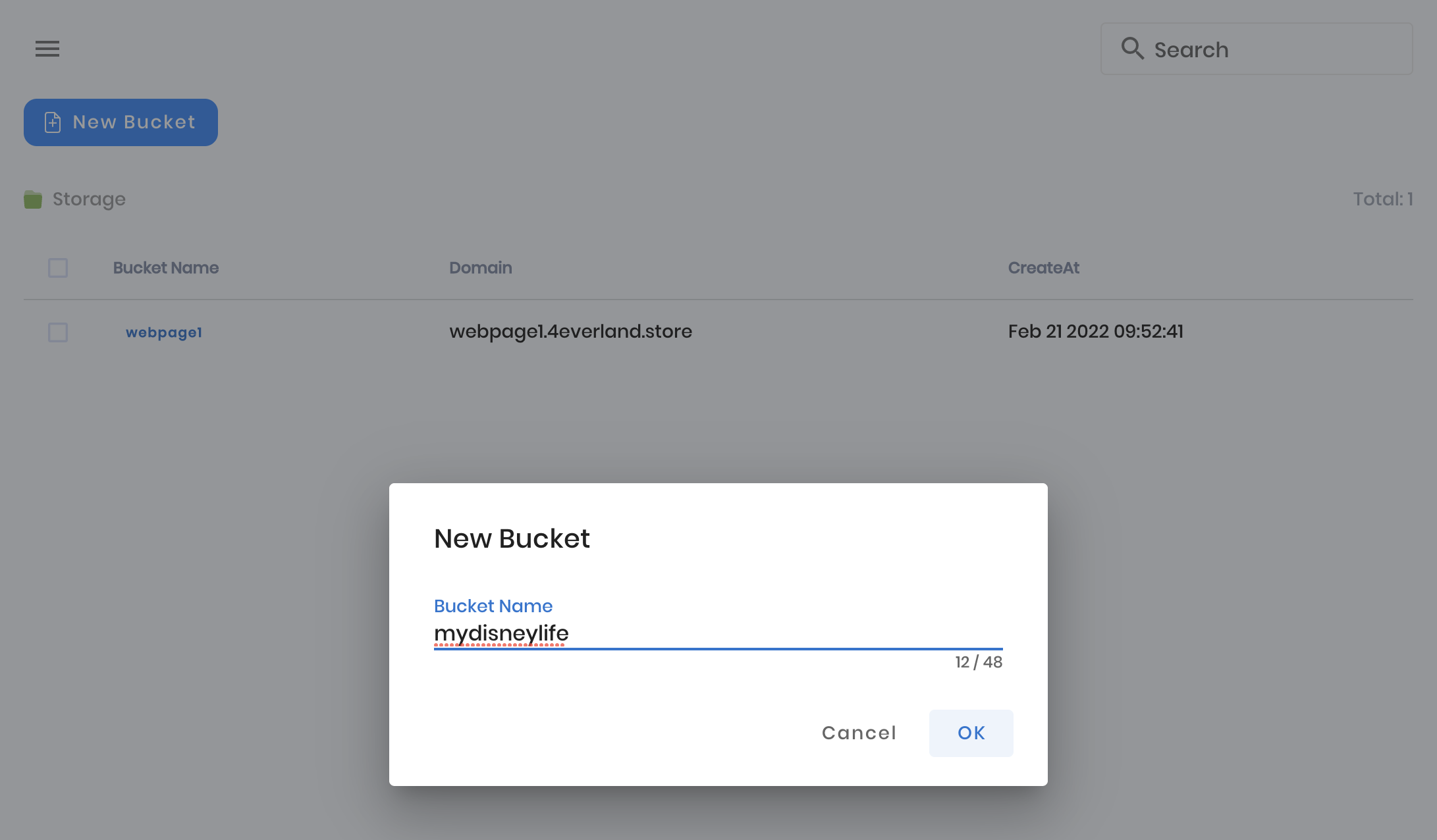 5. New Bucket 을 누르면 버킷이름을 설정할 수 있다.