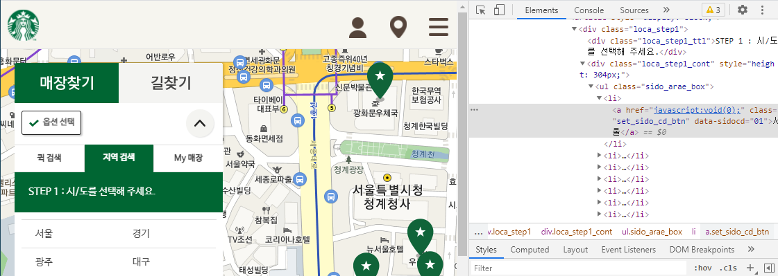 서울이라는 단어를 찾기(search)해도 나오지 않은 것으로 보아
