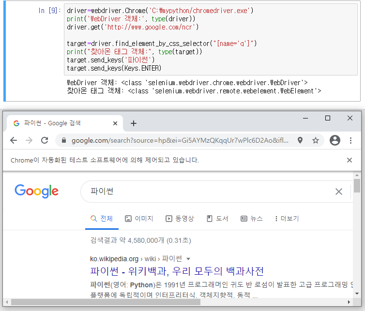 마지막으로 driver.quit( )이라는 문장을 넣어주면
